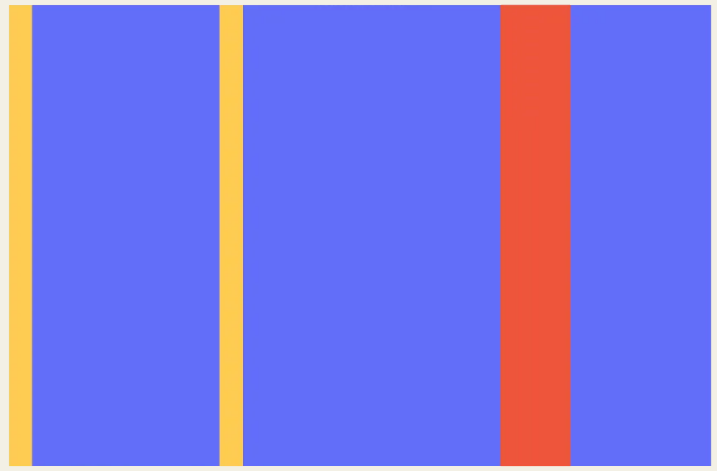 heatmap = sns.heatmap(mask, yticklabels=False, cbar=False, cmap=['#636EFA', '#EF553B', '#FECB52'])