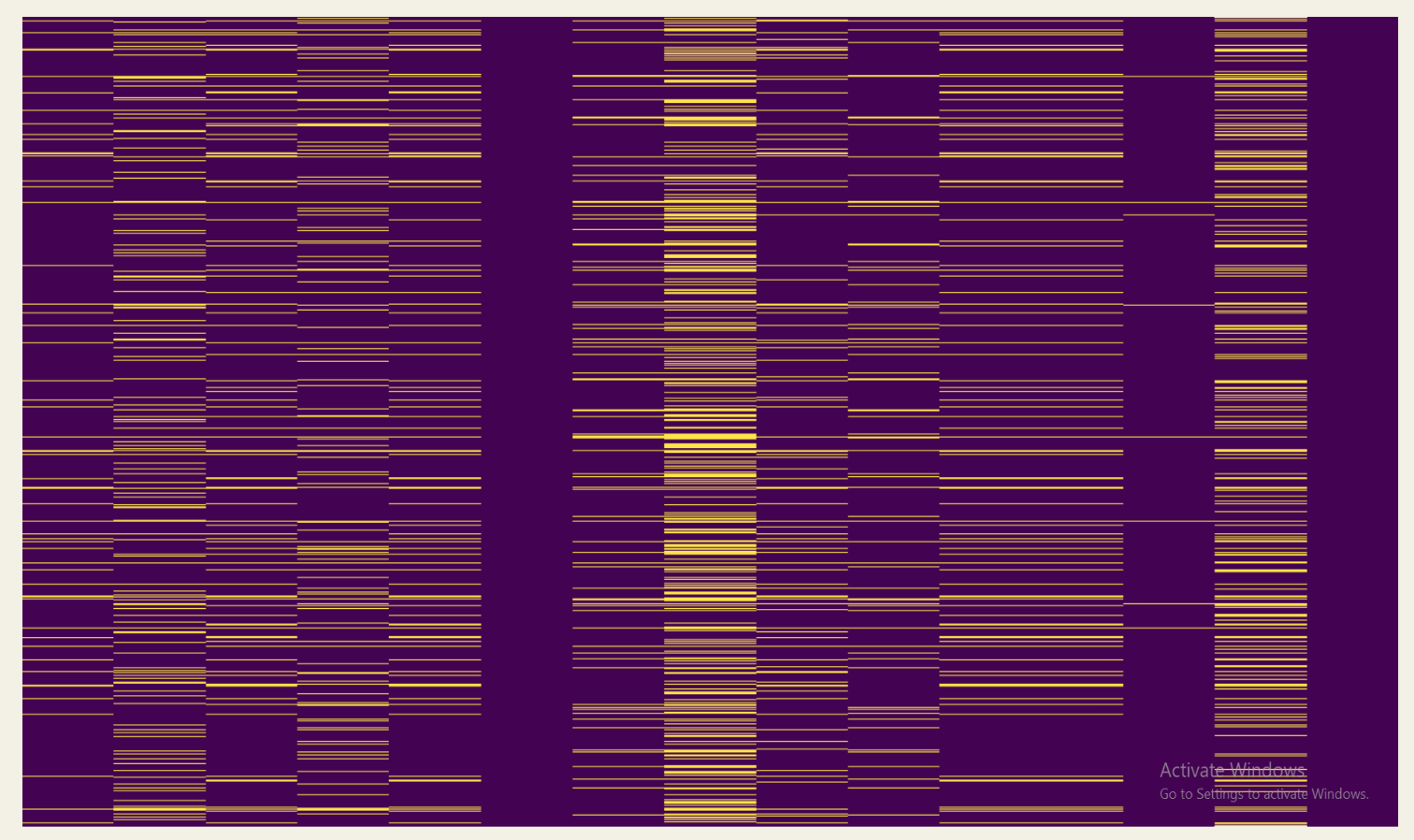 We use a heatmap that helps us identify which rows and columns are problematic. This is an example of what it would look like if we missed quite a bit of data.