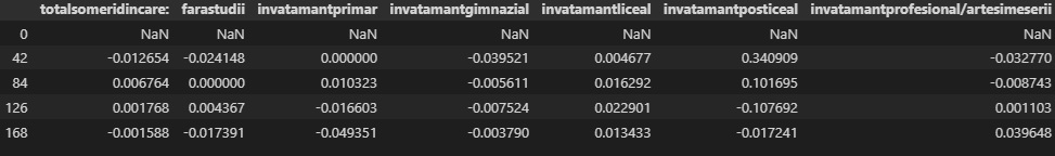 Thankfully we don't have many missing values, and some of them can be explained. For example we can observe that a series of months at the beginning of 2019 had NaN values instead of zeroes due to Bucharest having no rural area.